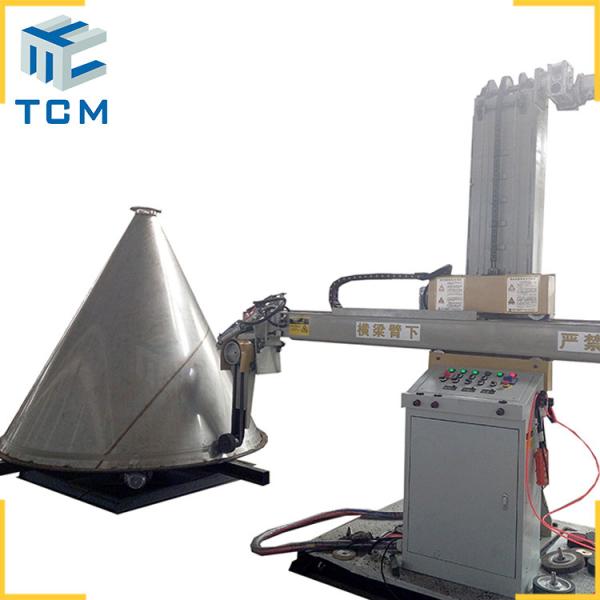 TCM-D column and boom manipulator automatic surface grinding machine is for steel metal tank end,dish head,tank cap / bottom / cone inner outer surface polishing and buffing.